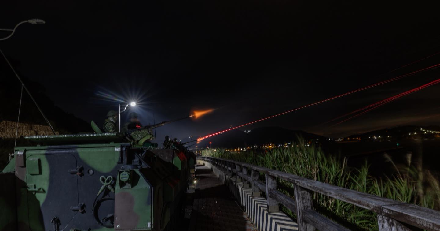 火光劃破漆黑夜空,展現外島官兵保衛國土決心。